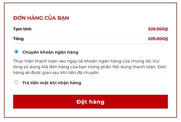 BƯỚC 4: LỰA CHỌN HÌNH THỨC THANH TOÁN & VẬN CHUYỂN